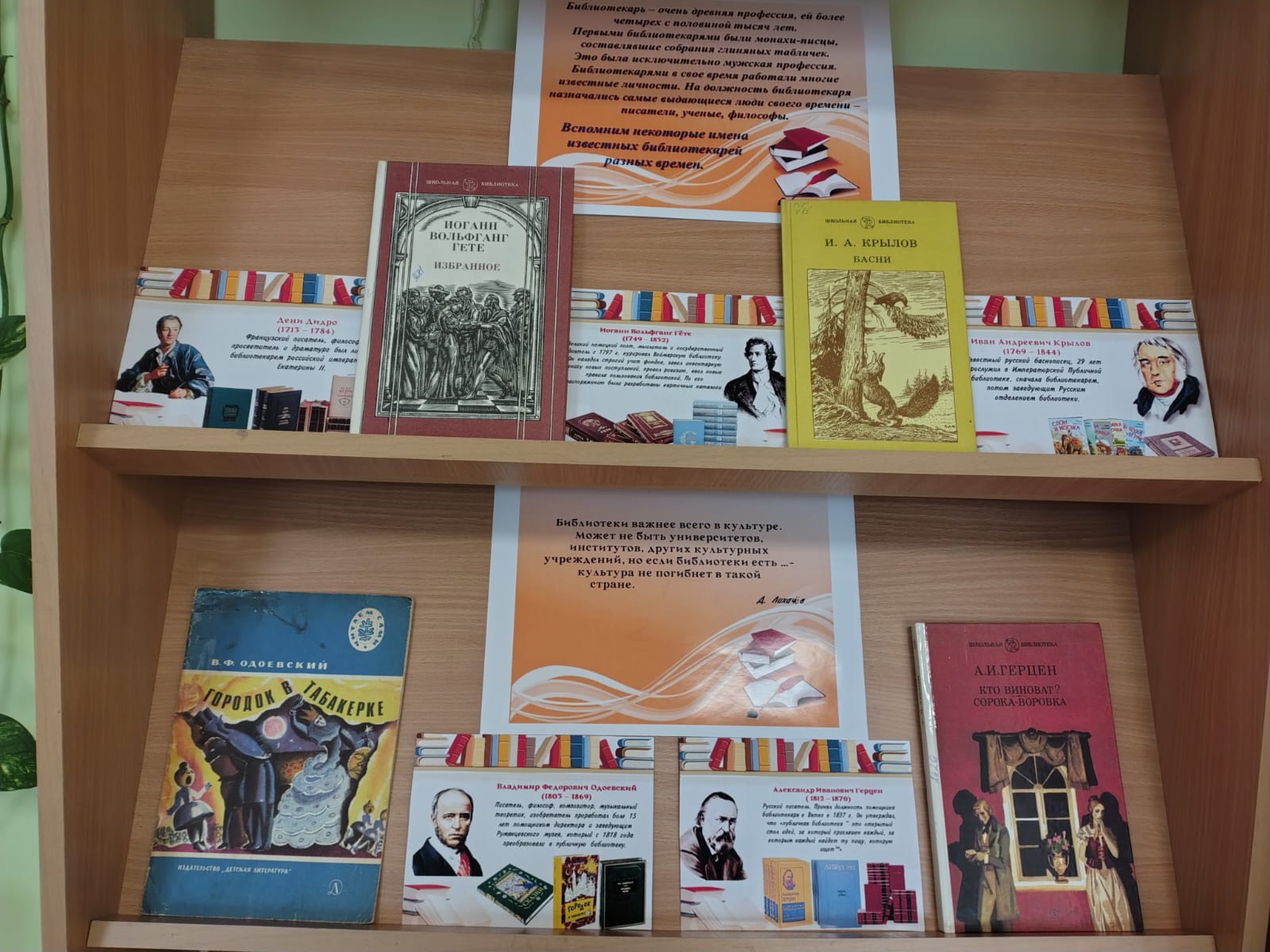На выставке представлены произведения известных авторов, которые в разные годы работали в библиотеках и черпали вдохновение среди книг. Среди них — Иван Бунин, И.А. Крылов, В.Ф. Одоевский, А.И. Герцен, М.М. Пришвин, К.И. Чуковский и многие другие. Их творчество наполнено любовью к книге, к слову, к читателю — ведь именно библиотека стала для них тем местом, где рождается уважение к духовному богатству народа.