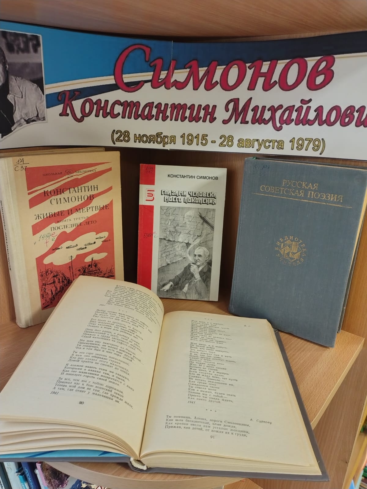 В 2025 году исполняется 110 лет со дня рождения Константина Михайловича Симонова — поэта, прозаика, драматурга, журналиста и военного корреспондента, чьё имя неразрывно связано с историей Великой Отечественной войны и героизмом советского народа. К этой юбилейной дате в библиотеке оформлена тематическая полка, знакомящая читателей с ключевыми произведениями писателя и фактами его биографии.