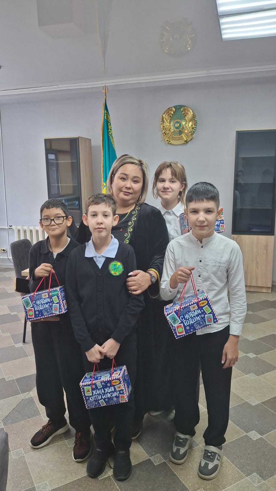 В преддверии Нового года Халык Банк оказал спонсорскую помощь нашей школе и подарил детям настоящий праздник 🎁🍬
