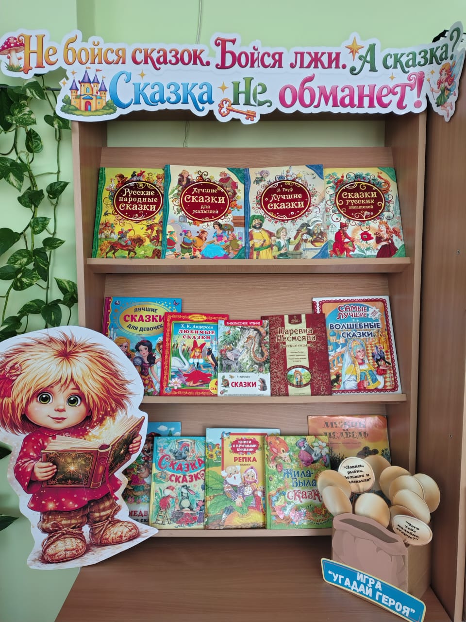 Выставка представила вниманию юных читателей лучшие образцы народных и авторских сказок. На полках разместились произведения, знакомые каждому с детства: русские народные сказки, сказки народов мира, а также книги известных детских писателей. Красочно оформленные издания привлекали внимание детей, побуждая их открыть книгу и окунуться в удивительные приключения сказочных героев. Особое внимание было уделено оформлению выставки: иллюстрации, яркие декоративные элементы, сказочные персонажи создавали атмосферу настоящего праздника книги